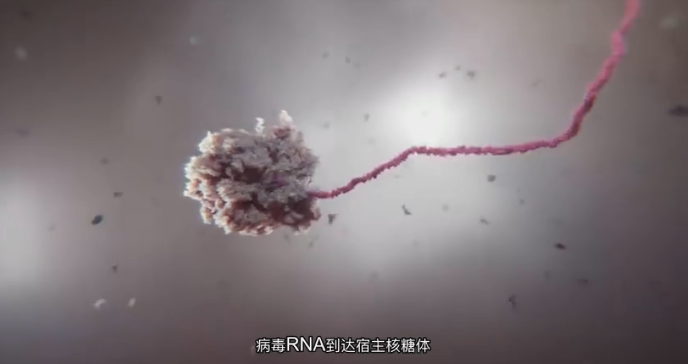 字幕翻譯:除非受到控制,每次感染通常會(huì)導(dǎo)致到人隨后被感染。像其他冠狀病毒一樣,“Sars-Coronavirus-”將其遺傳物質(zhì)存儲(chǔ)到宿主細(xì)胞中。病毒RNA到達(dá)宿主核糖體作為生產(chǎn)病毒蛋白的工廠。
